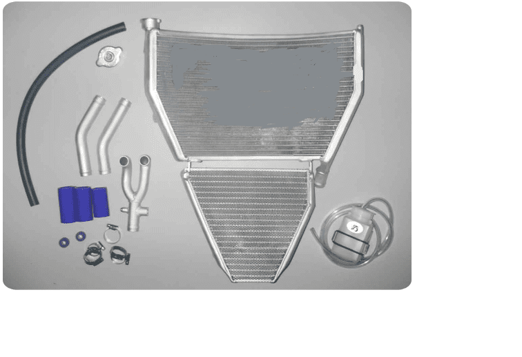 Nous vous conseillons volontiers et pouvons, sur demande, monter ce radiateur sur votre moteur de circuit. Le radiateur est vendu dans un ensemble et est livré avec :